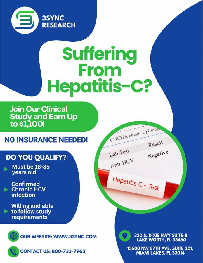 💚 Estudio de Hepatitis C – Gane Hasta $1,100 + Atención Gratuita Relaciona (Hialeah)